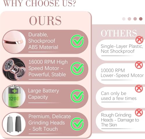 - تتميز بتصميم سهل الاستخدام: نظام تشغيل بسيط مع أزرار سهلة للتحكم في السرعة كأداة لإزالة الجلد الميت بكفاءة عالية.