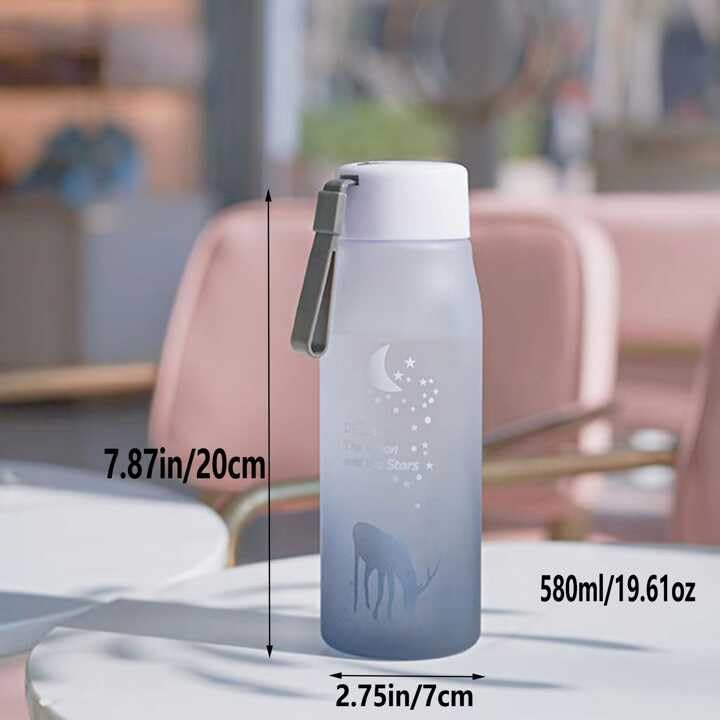 - السعة: زجاجة مياه بسعة 580 مل رائعة لاحتياجات الشرب اليومية، تتميز بتصميم أنيق وعصري ولمسة نهائية متدرجة مصنفرة غير شفافة.
