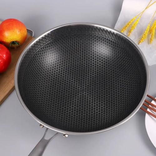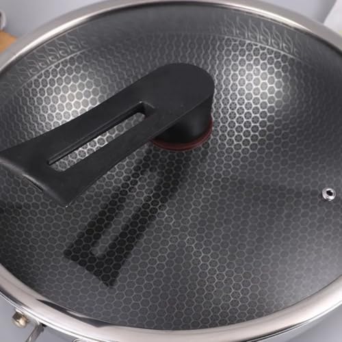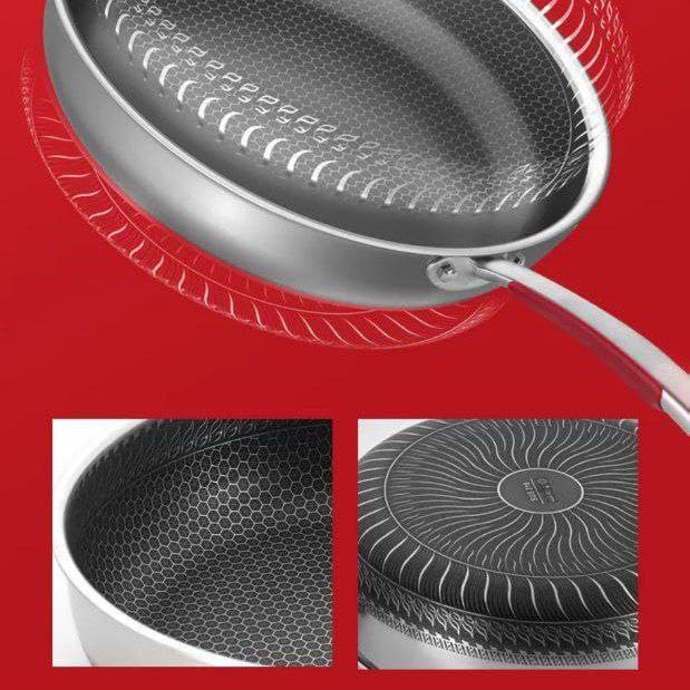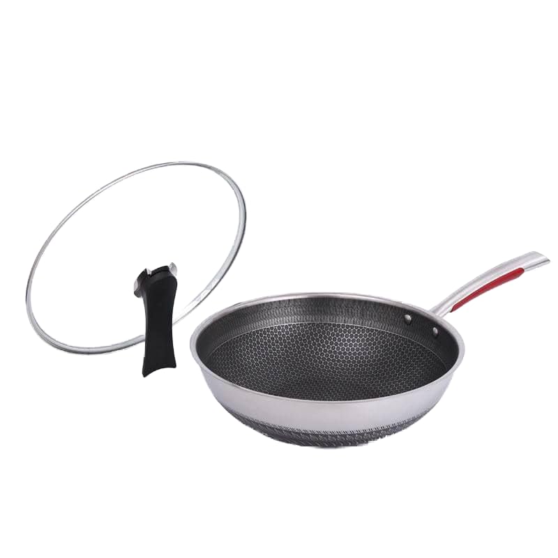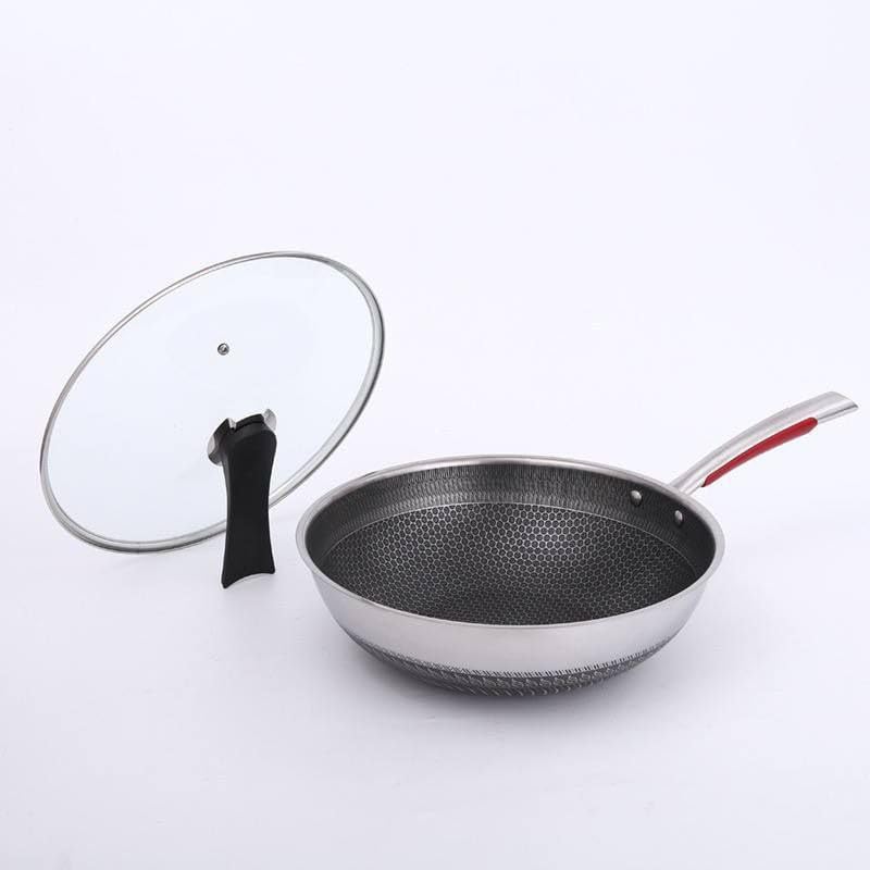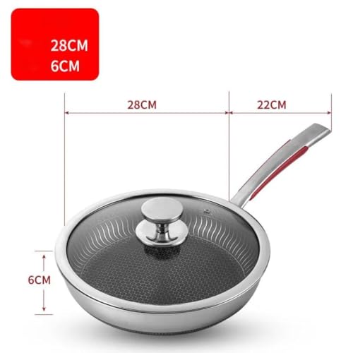 Generic - مقلاة مع غطاء زجاجي، ٢٨ سم، مانعة للالتصاق بنمط خلية النحل، مع مقبض مريح، فضي