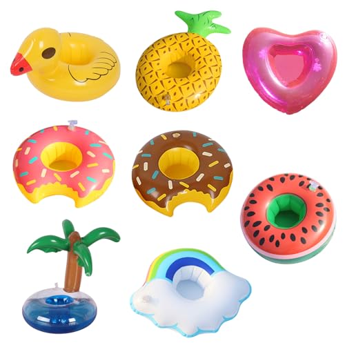 FUIPVGI - مجموعة حوامل مشروبات قابلة للنفخ عائمة ولطيفة لحمام السباحة والحفلات الصيفية من 8 قطع من فويبجي (متعددة الألوان)