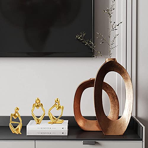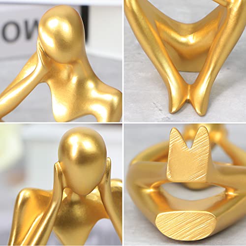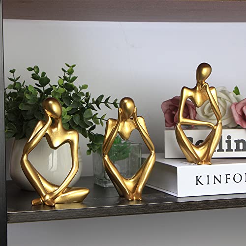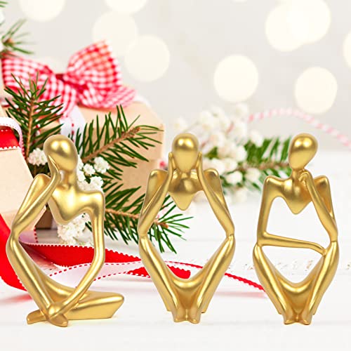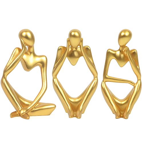 fumisee - مجموعة تماثيل المفكر التجريدية من 3 قطع من فوميسي، تماثيل صغيرة من الراتنج مناسبة لديكور المنزل والمكتب ورف الكتب والمكتب العصري (ذهبي)