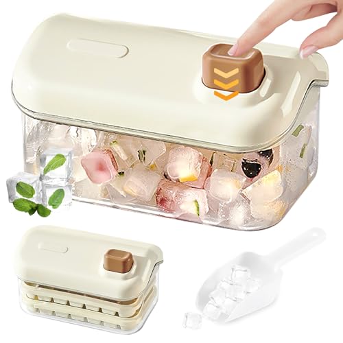 Amerzam - قوالب مكعبات ثلج على شكل منزل مع زرار لإسقاط الثلج - طقم قوالب ثلج قابلة للتكديس مع غطاء وعلبة تخزين ومغرفة سهلة التحرير للفريزر - 21 × 13 × 14.5 سم