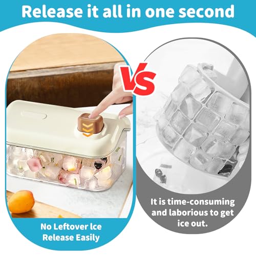 • زرار ذكي لفك الثلج - نظام مبتكر يعمل بلمسة واحدة تُسقط جميع مكعبات الثلج على الفور - ما عليك سوى الضغط على الزرار العلوي للحصول على مكعبات مثالية بدون لوي القالب أو تكسيره. لا مزيد من المعاناة مع مكعبات الثلج العالقة.