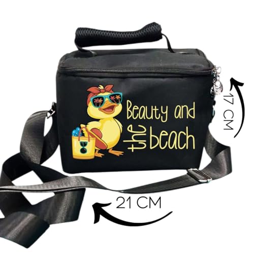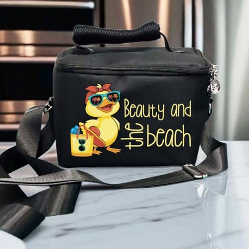 Generic - شنطة غداء بتصميم مضحك، شنطة غداء للمدرسة، حزام قابل للتعديل، خامة مبطنة، لون اسود، بيوتي اند ذا شاطئ، لانش باج للاطفال للمدرسة، مفيش وقت الانهيار، برنت