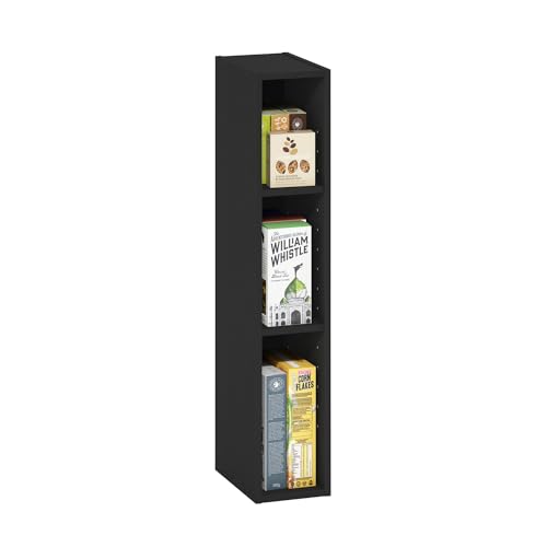 Furinno - فرونو خزانة كتب موفرة للمساحة من 3 طبقات فولدا عرض 6 انش خشب اسود