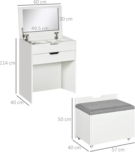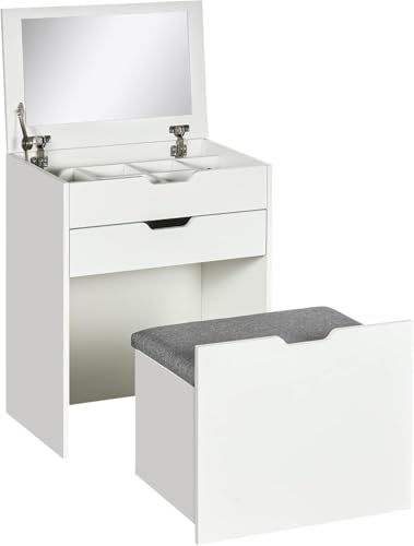 FurniFlex - طقم تسريحة مع مراية وكرسي مطابق من فورني فليكس، لون أبيض