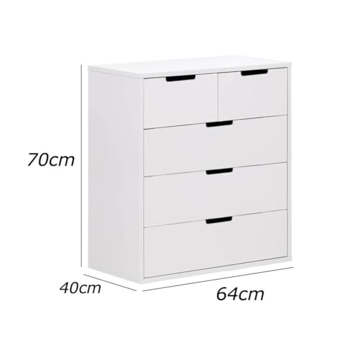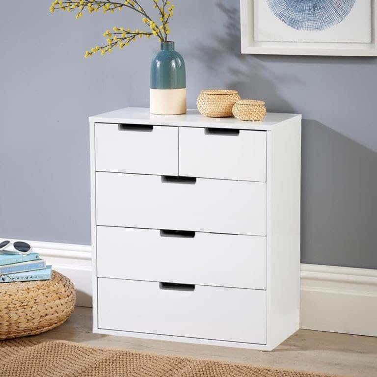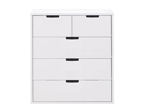 - وحدة ادراج مودرن ام دى اف - ارتفاع 70 سم - عرض 64 سم - عمق 40 سم ، تتكون من 5 ادراج ، مصنوعة من ال MDF عالي الجودة ، سُمك 16مم ، مع طبقة ملامين خارجية من اللون الأبيض المطفي. مع ميكنزم معدن (مجرة الدرج معدن 2 مرحلة) ، فنش عالي الجودة ، من فرنتشر ستور.