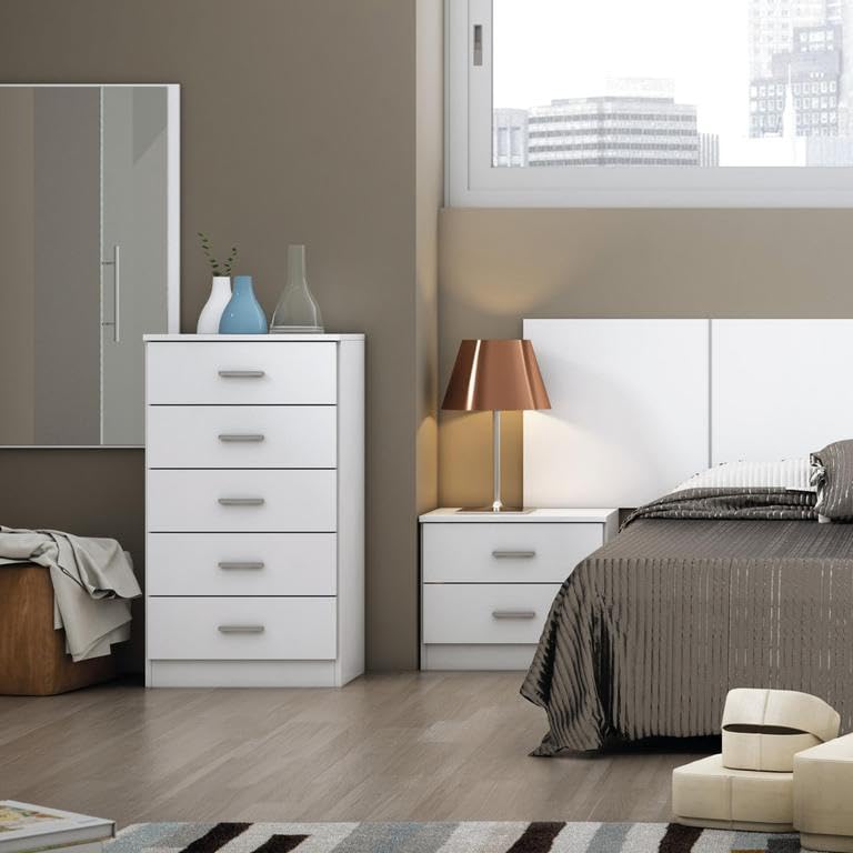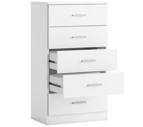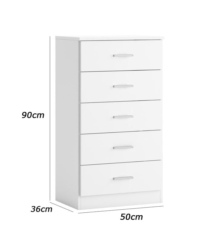 - وحدة ادراج مودرن ام دى اف - ارتفاع 90 سم - عرض 50 سم - عمق 36 سم ، تتكون من 5 ادراج ، مصنوعة من ال MDF عالي الجودة ، سُمك 16مم ، مع طبقة ملامين خارجية من اللون الأبيض المطفي. مع ميكنزم معدن (مجرة الدرج معدن 2 مرحلة) ، فنش عالي الجودة ، من فرنتشر ستور.