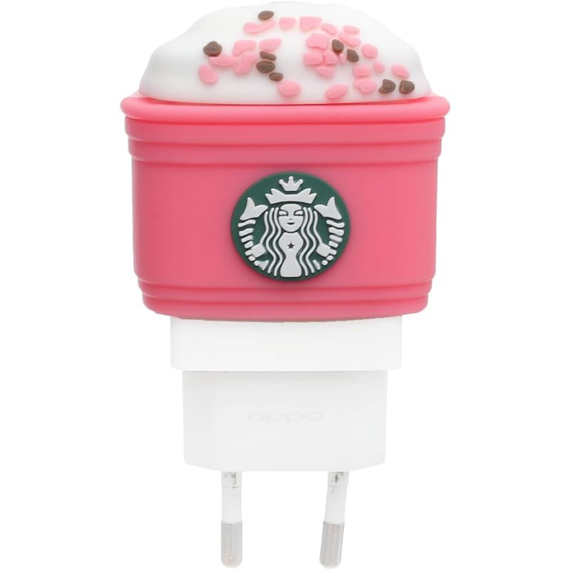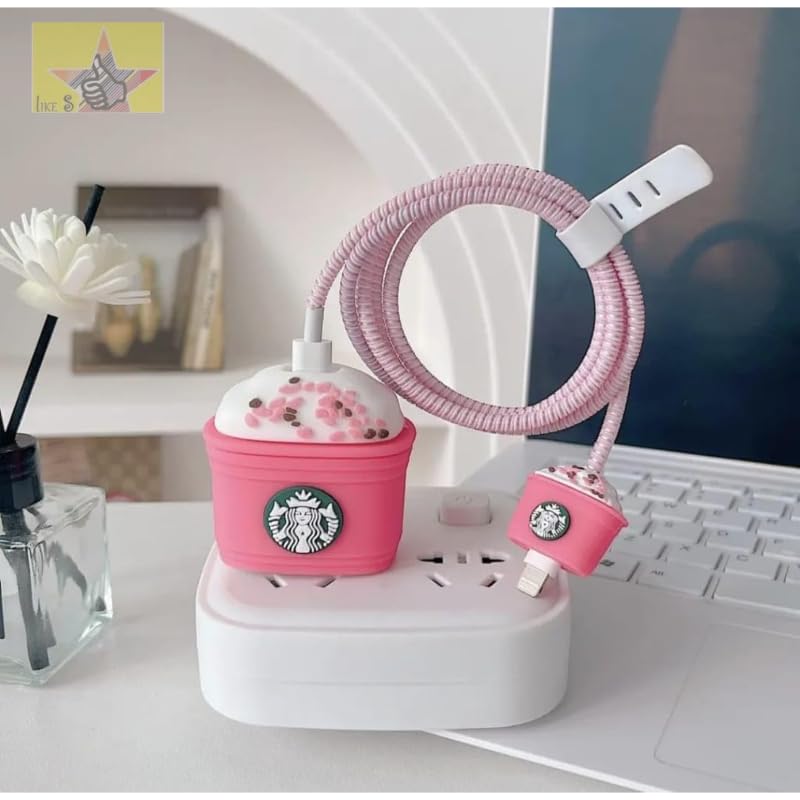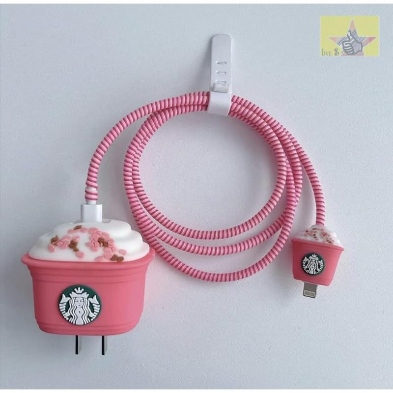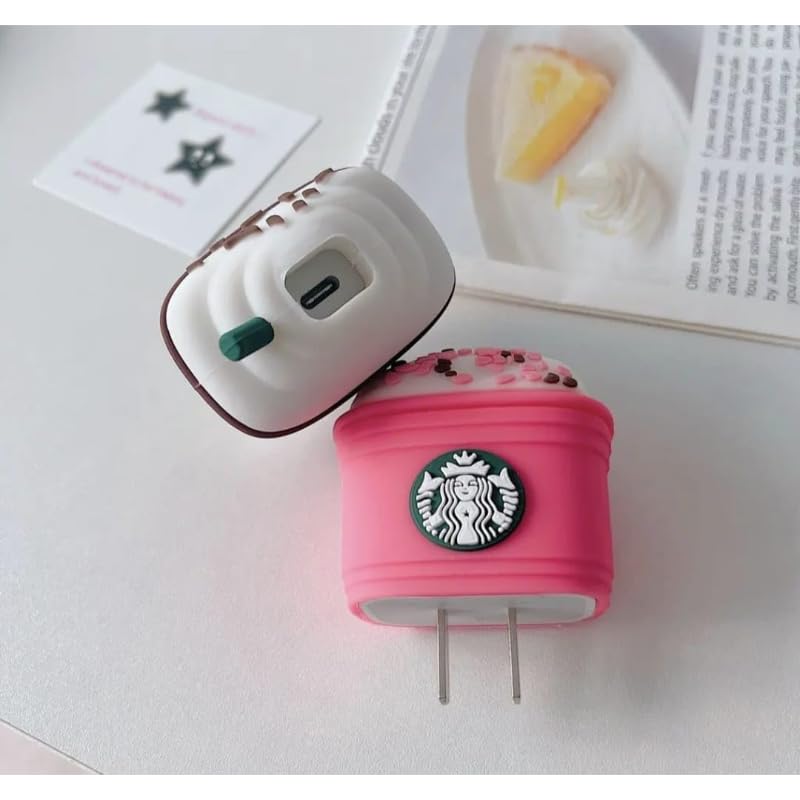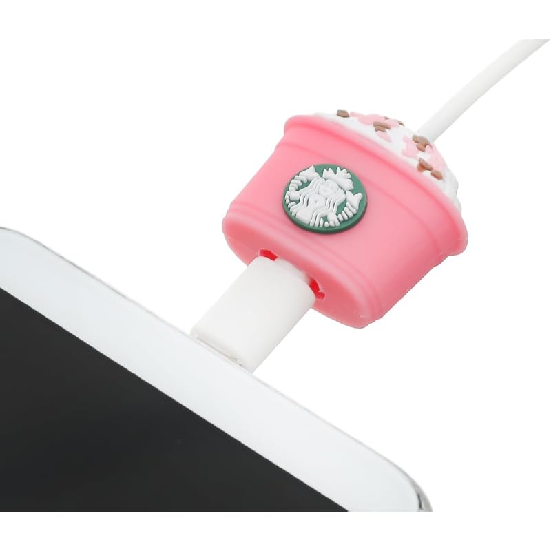 G-Power - واقي شاحن وكابل من السيليكون الصلب مصمم على شكل مشروب مثلج من جي باور، CH-010، قطعتين، بينك وأبيض