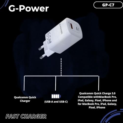 G-POWER - شاحن من جي باور بتقنية USB، متوافق مع ماك بوك برو وآيباد وآيفون وجالاكسي وبيكسل، بمنفذين