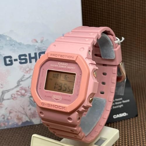 Casio - ساعة رياضية رقمية جي-شوك للجنسين بسوار من الراتينج من كاسيو - DW-5610SL-4A4DR