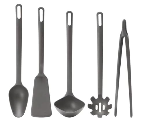 GabTon Rise - مجموعة ادوات مطبخ من 5 قطع من ايك ايه، بلاستيك بولي اميد مقوى، غير لاصقة، ملعقة تقليب سباجيتي، مغرفة وملعقة وملاقط