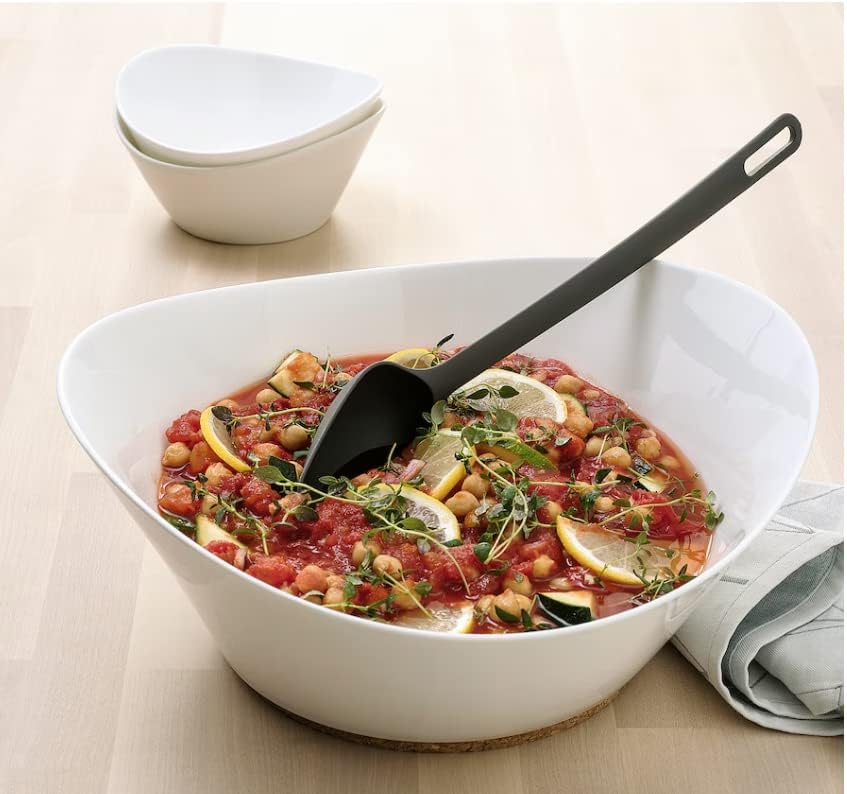 - المحتويات: ملعقة تقليب (32 سم)، ملعقة (33 سم)، مغرفة (29 سم)، أداة تقديم المعكرونة (31 سم) وملاقط الطبخ (28 سم).