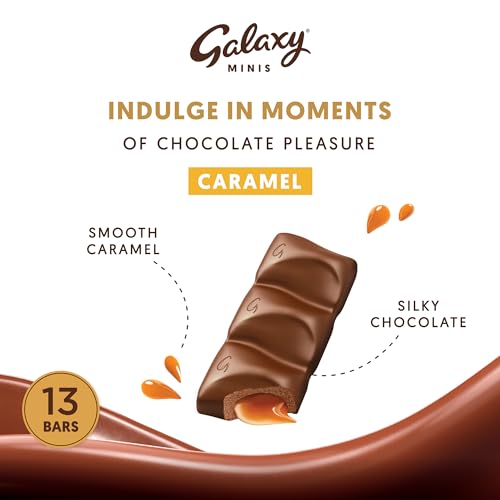 GALAXY - جالكسي شوكولاته مينيز بالكراميل، شارك لحظات من متعة الشوكولاتة مع شوكولاتة جالكسي بنعومة الحرير مليئة بالكراميل، 13 قطعة × 182 غ