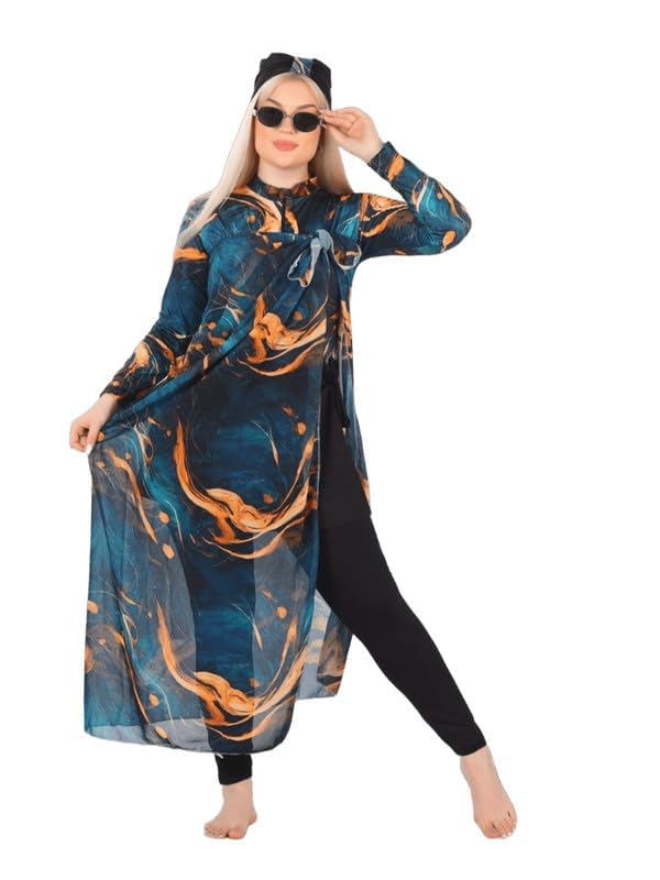 GAMAL SONS FOR ABAYA - مايوه شرعي 4 قطع بربطة أمامية وتصميم عصري مطبوع GAMAL SONS FOR ABAYA GS-072-51043-Parent
