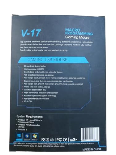 - ماوس v-17 هو خيار ممتاز للاعبين الذين يبحثون عن أداء عالي ودقة عالية. يجمع هذا الماوس بين التصميم الأنيق والميزات المتقدمة لتوفير تجربة لعب استثنائية ويمكنك تخصيص الماوس ليناسب نمط لعبتك عن طريق ضبط إعدادات الدقة والسرعة..