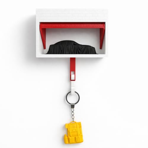 Generic - حامل مفاتيح يثبت على الحائط مع رف مزخرف، تصميم جراج مع سيارة وباب احمر، منظم خطاف للمفاتيح من كراج ستايل