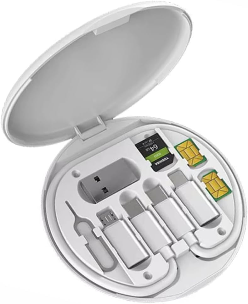 GBM US - مجموعة محول USB نوع سي إلى لايتنينج كابل شحن متعدد لأجهزة iOS بيانات للسفر يحتوي على بطاقة تخزين وحامل موبايل ودبوس إخراج شريحة الاتصال أبيض عدد المنافذ: 3