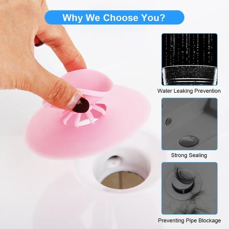 Space Shop - مصفاة سيليكون عصرية، غطاء تصريف 2 في 1 مانع لتسرب الشعر للأحواض والمطابخ والحمامات وغرف الغسيل، 1 قطعة