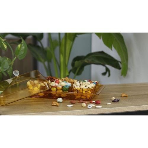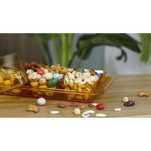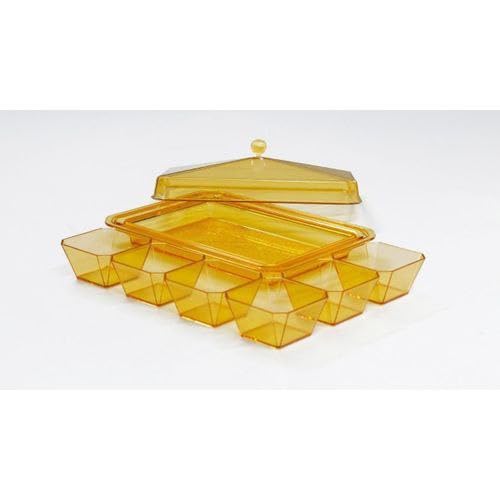 - مزايا التصميم: صينية تقديم إفطار من الأكريليك الكهرماني على الطراز العتيق بتصميم هندسي، تتميز بـ 6 أوعية فردية وغطاء مطابق لتنظيم الطعام الأنيق
