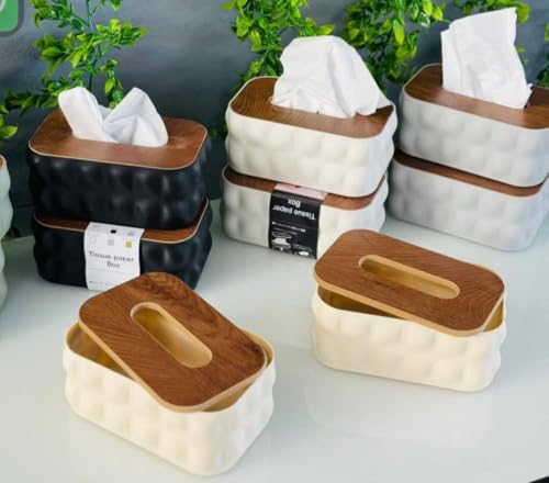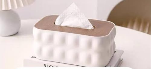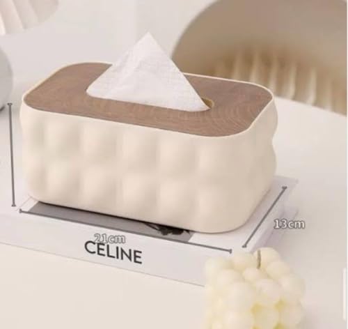 Generic - علبة مناديل بتصميم فقاعات، علبة مناديل أكريليك مع غطاء خشب، حامل مناديل مزخرف لغرفة المعيشة، (لون بيج)