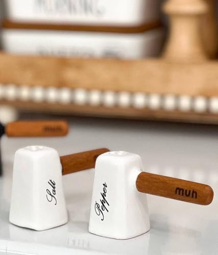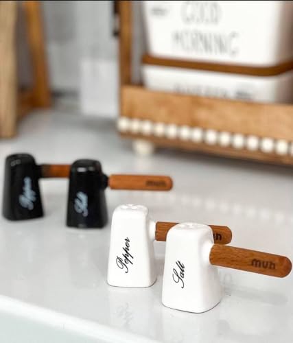 • محتويات الطقم: تتضمن المجموعة اثنين من ملاحات الملح والفلفل المصنوعة من السيراميك باللون الأبيض مع مقابض خشبية، ما يجعلها مثالية للاستخدام اليومي في المطبخ