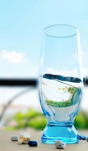 Generic - جيني اكواب شرب شفافة بقاعدة زرقاء، سعة 370 مل، مجموعة من 6 قطع، اكواب هاي بول كبيرة .اس ام كيه