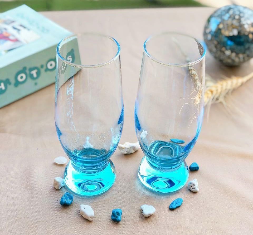 • تصميم أنيق: تتميز أكواب هاي بول الشفافة بقاعدة ملونة زرقاء لافتة للنظر تضيف لمسة أنيقة من الألوان إلى مجموعة أدوات الشرب الخاصة بك وتكمل أي إعداد طاولة