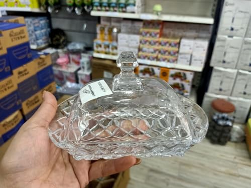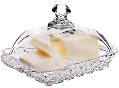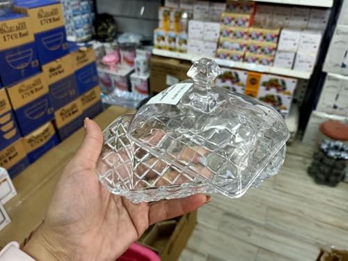 Generic - طبق زبدة من الزجاج الكريستال مع غطاء مزخرف، لون شفاف