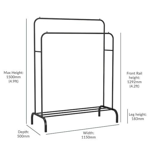 - رف الملابس المعدني مزدوج القضبان مصنوع من سبيكة من الصلب، مما يجعله قويًا ومتينًا.