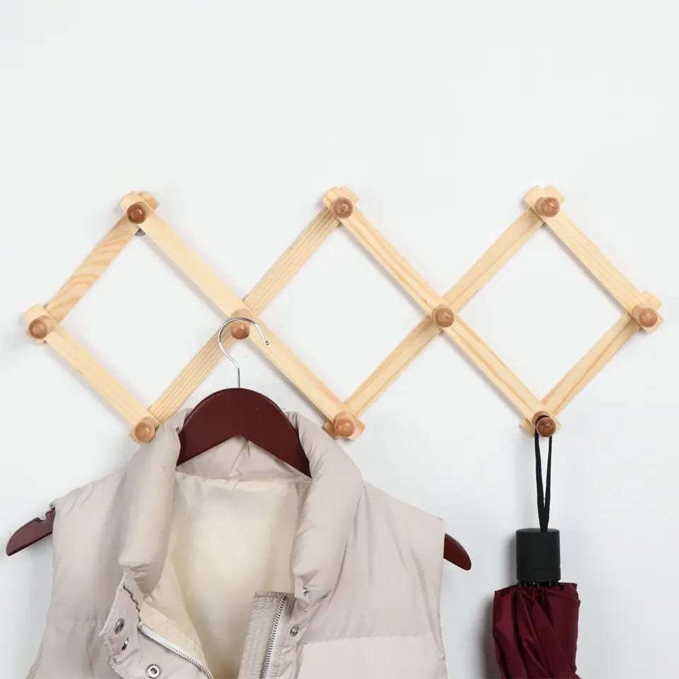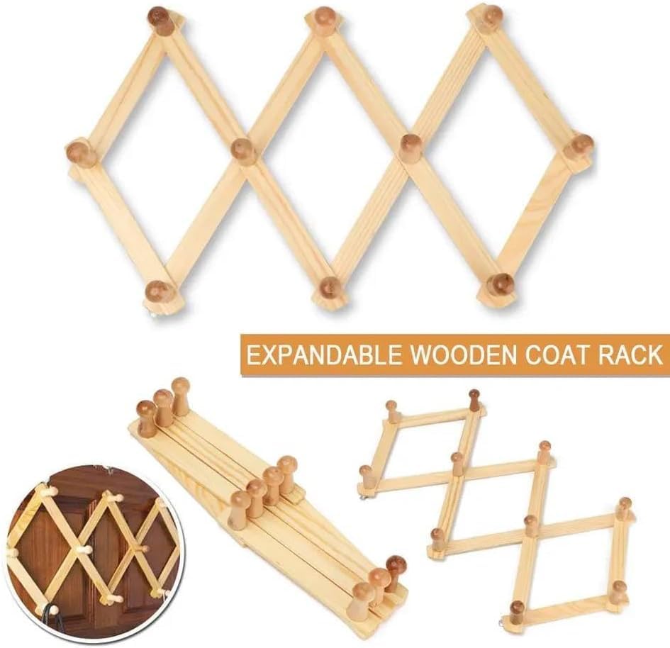 Generic - شماعة حائط خشبية قابلة للتوسيع بتصميم معينات مع 9 خطافات، من خشب الصنوبر الطبيعي، رف معطف بنمط اكورديون