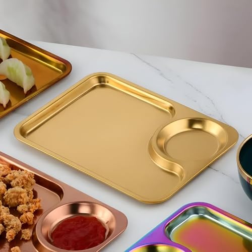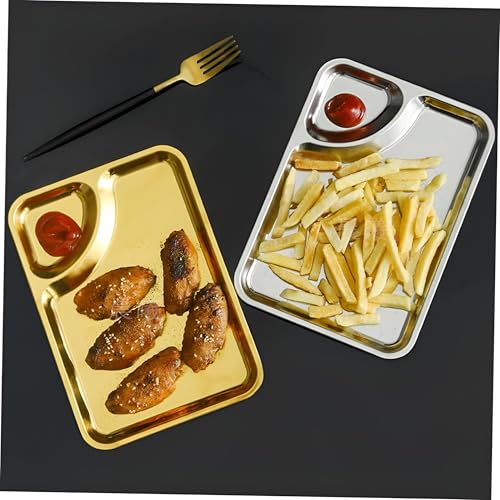 Generic - صحن مقسم للبطاطس المقلية والدجاج صحون مقسمة للاستخدام اليومي بفواصل متعددة مصنوع من الفولاذ المقاوم للصدأ مثالي للوجبات الخفيفة متعدد الألوان قطعة واحدة