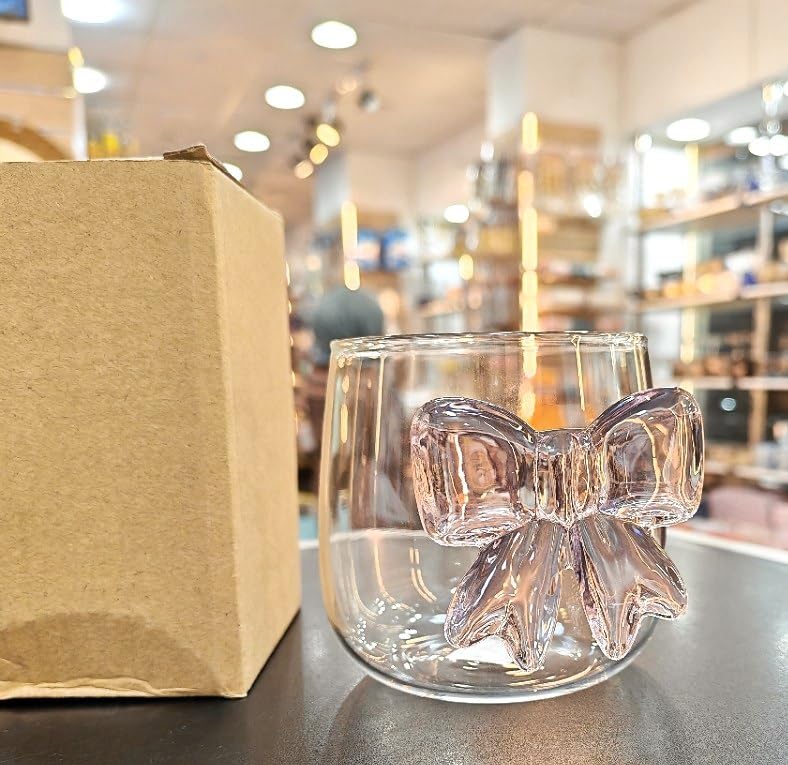 Generic - كوب من الزجاج على شكل فيونكة، كوب بومبي كبير بتصميم فيونكة مزخرفة، كوب شفاف من الزجاج .A2