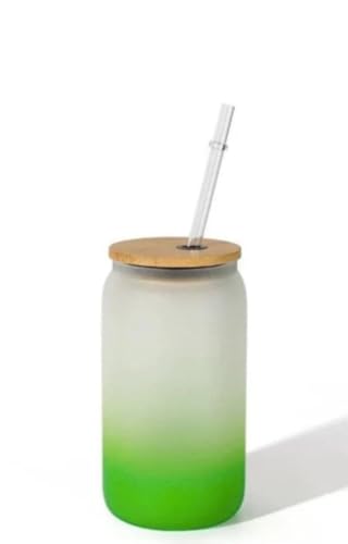 Generic - جيني علبة زجاجية وماصة زجاجية، سعة 450 مل، اخضر، كوب شرب قابل لاعادة الاستخدام للمشروبات الباردة والعصائر والقهوة المثلجة