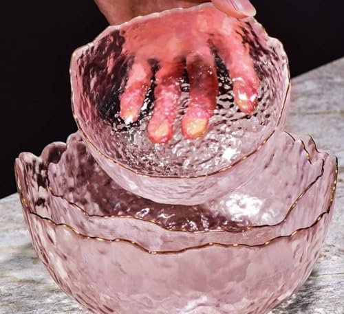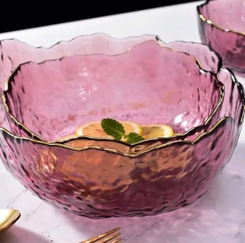 - تصميم أنيق: مجموعة أوعية زجاجية جميلة بلون بينك غير لامع مع حواف مموجة مزخرفة ذات حواف ذهبية تضيف لمسة راقية إلى طاولة الطعام الخاصة بك وتكمل أي نمط ديكور