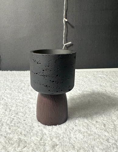 Generic - جيني مبخرة سيراميك مصنوعة يدويا، بلونين اسود وبني، لمسة نهائية نسيجية، تصميم عصري بسيط، ديكور رمضان. كيه ال