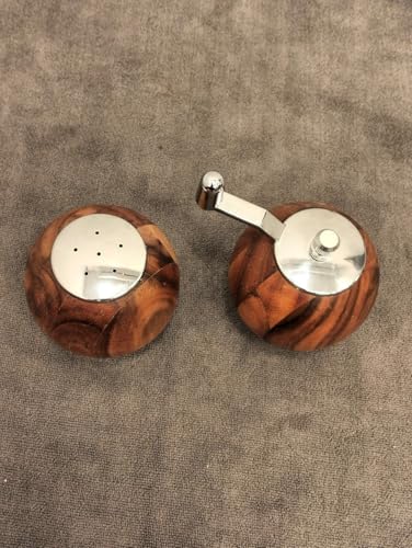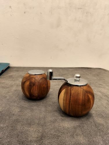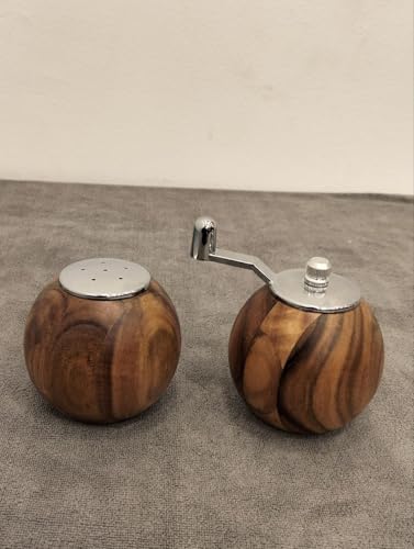 Generic - طقم مطحنة ملح وفلفل مصنوعة يدويا من خشب الزيتون البري، رشاشات كروية للمطبخ مزودة بغطاء علوي من الفولاذ المقاوم للصدأ، عبوة من قطعتين