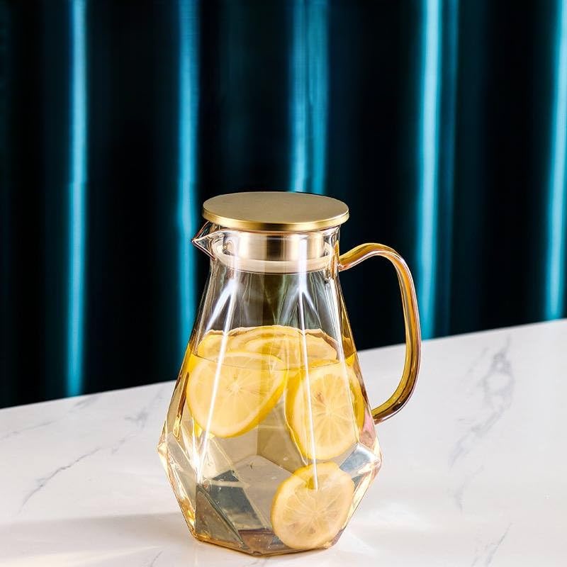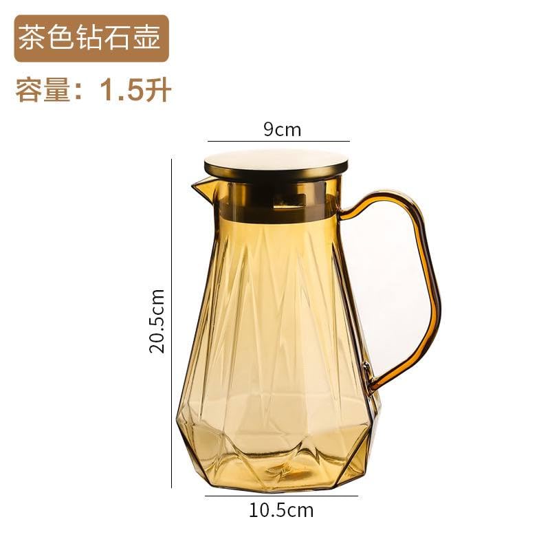 Generic - جيني ابريق زجاجي مقاوم للحرارة مع غطاء، للمشروبات الساخنة والباردة، سعة 1.5 لتر، سوه