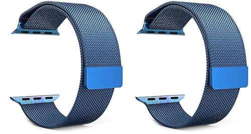 Generic - سوار ساعة معدني ستانلس ستيل بحلقة مغناطيسية لساعات ابل مقاس 38 ملم، أزرق، للجنسين