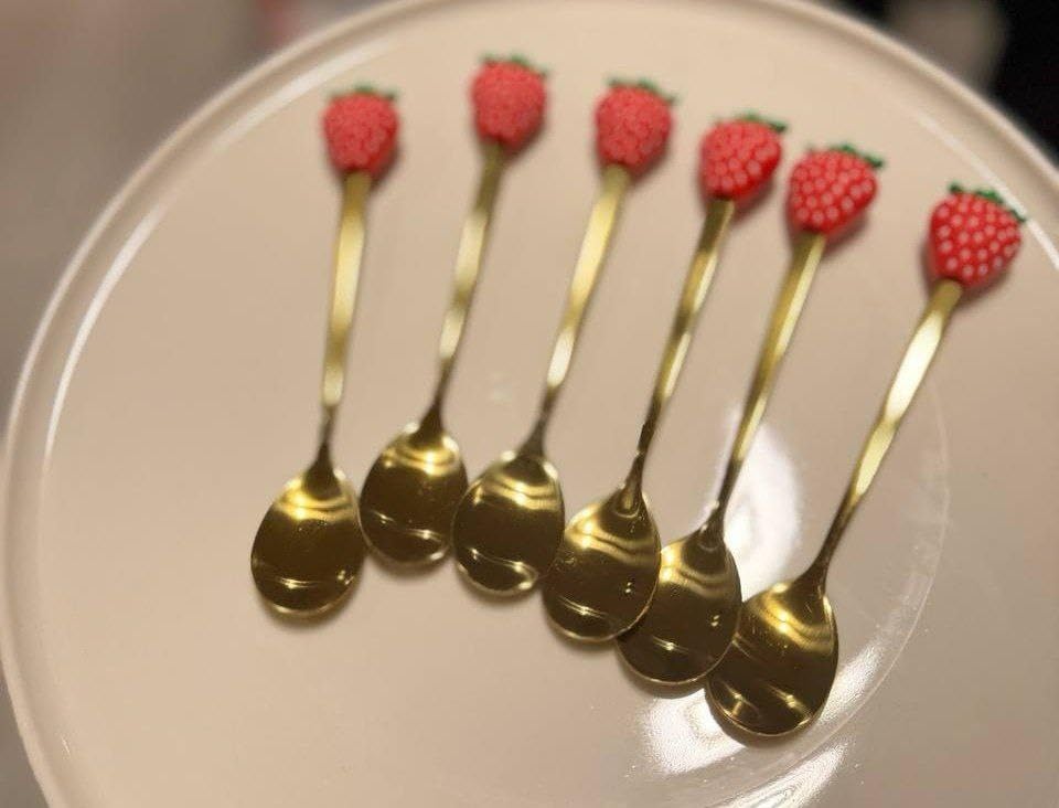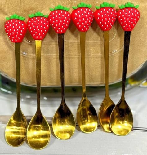 - تصميم أنيق: طقم مكون من 6 معالق صغيرة للحلويات من الفولاذ المقاوم للصدأ باللون الذهبي، مزودة برؤوس سيليكون على شكل توت لإضفاء لمسة جمالية وشيقة عند التقديم.