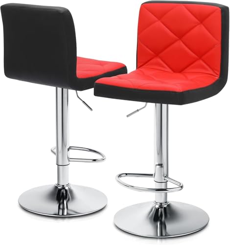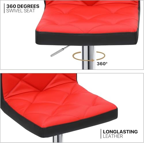 Generic - كراسي بار عصرية قابلة للتعديل بظهر مبطن وقاعدة من الكروم، طقم من قطعتين - لون أسود وأحمر