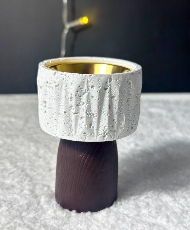 - مواد فاخرة: مصنوع من مواد خرسانية وخشبية عالية الجودة، يوفر الجزء الداخلي الذهبي لمسة نهائية أنيقة بينما تضمن القاعدة المتينة وضعًا ثابتًا على أي سطح مستوٍ