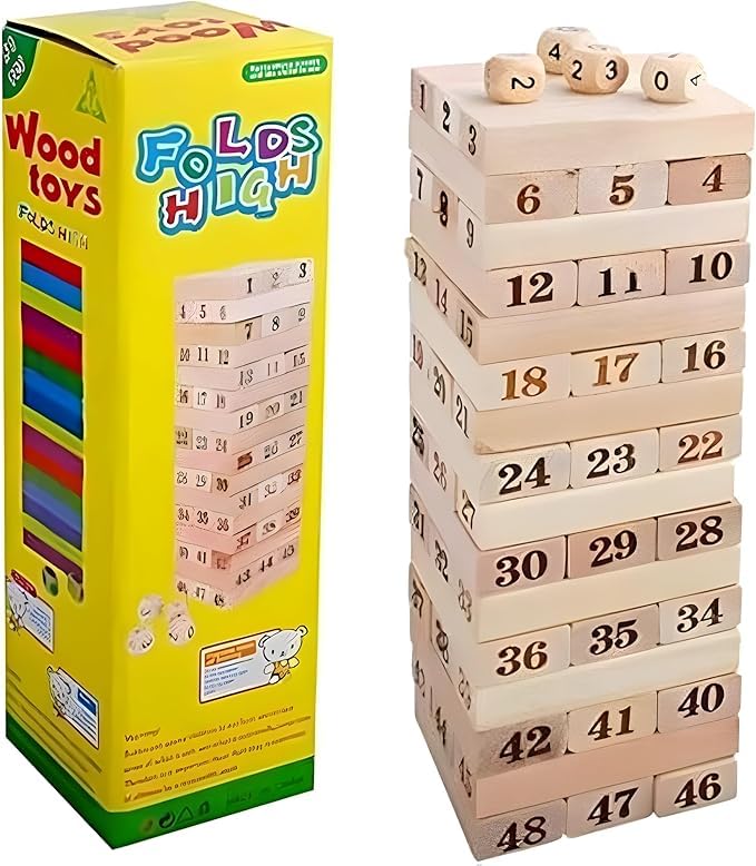 Generic - لعبة بناء برج خشبي كبير كلاسيكية ممتعة للأطفال من سن 3 سنوات فما فوق، تعزز التوازن والتركيز، لنمو الدماغ والترفيه من نيكست ستور، 48 قطعة