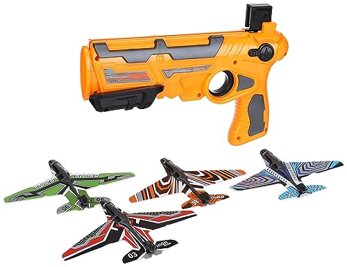 GHAZAL - طائرة إسفنجية بضغطة زر واحدة مع 4 قاذفات منزلقة للأطفال (لون أصفر)