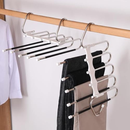 - - شماعة البناطيل المتعددة تستوعب مجموعة متنوعة من الملابس مثل البناطيل، الطرح، والكرفتات.