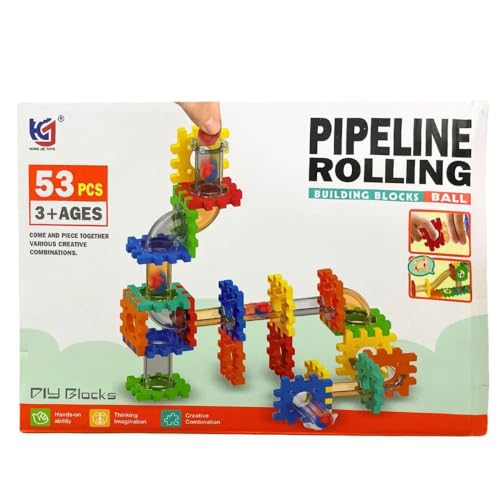 Generic - جيني مجموعة مكعبات بناء دوارة من بايبلين، 53 قطعة، لعبة بناء تعليمية، للاعمار من 3 سنوات فما فوق، بلاستيك، متعددة الالوان، بناء مسار الكرة، تعلم العلوم والتكنولوجيا والهندسة وال