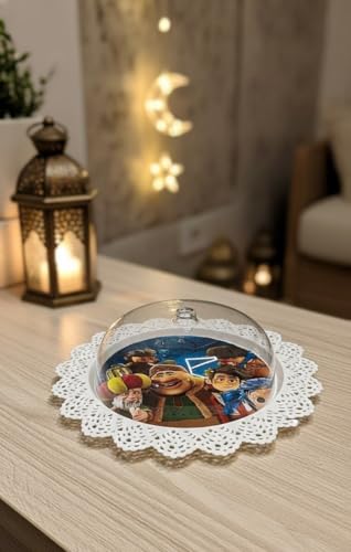 Generic - جيني طبق تقديم بلاستيكي مع غطاء على شكل قبة، حاوية للتمر مع قاعدة مزخرفة من الدانتيل. فلو
