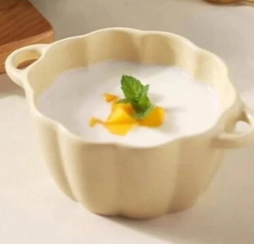 Generic - جيني طبق كسرولة بورسلين مع مقابض، وعاء تقديم للحلويات والوجبات الخفيفة، قطر 8 سم، (اصفر فاتح)