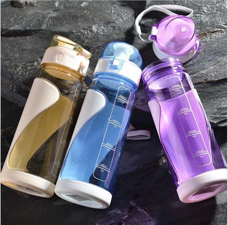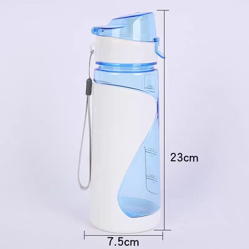 Generic - زجاجة مياه رياضية فاخرة من الاكريليك بلون أبيض مع غطاء أزرق، زجاجة مقاومة للتسرب بسعة 650 مل، للمدرسة والعمل والسفر .دي بي