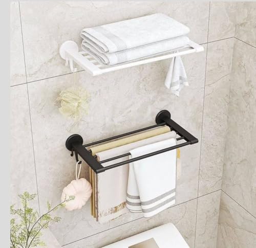 Generic - جيني رف مناشف فاخر يثبت على الحائط، هيكل معدني اسود، تصميم موفر للمساحة مقاوم للصدا، مقاوم للماء والغبار لتخزين الحمام